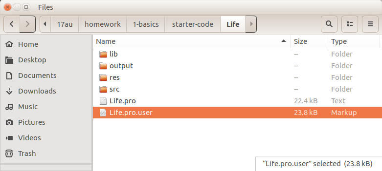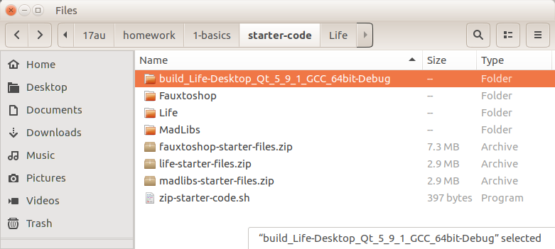 Once you finish doing that, you'll need to close Qt Creator. Go to the directory where you keep your assignment, and delete all files ending in ".pro.user". Then, click on the .pro file and you can reconfigure your project with the debugger ready to go.
