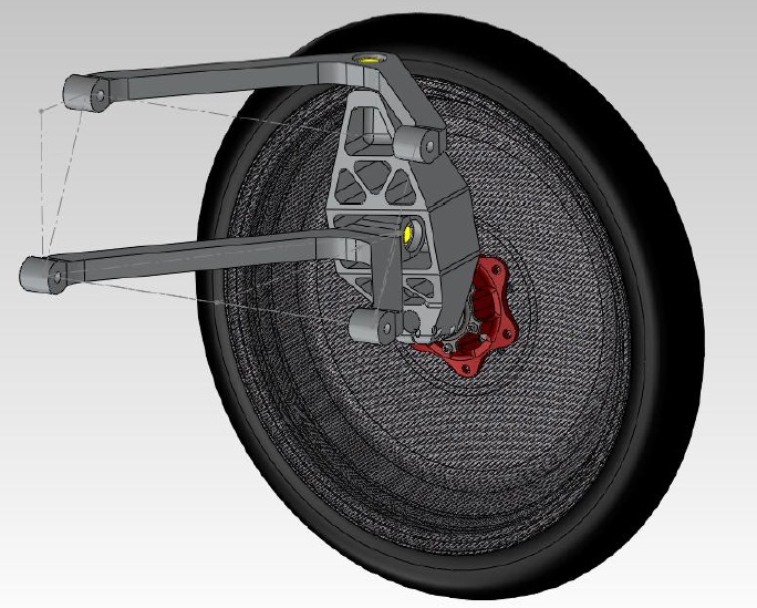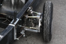 The students prototyped a monocoque body out of carbon fiber sandwich sheets which accommodates the driver, the battery, and most of the electrical / mechanical components. While the suspension follows still a relatively traditional design with double wishbones, the steering of the front wheels is operated by two pull / push levers, one on each side of the driver. The rear wheel is driven by a hub motor that accelerated the concept well beyond 30mph.