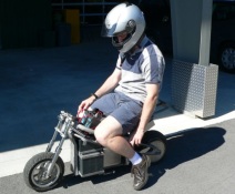 While the "Pocket Rocket" may have unassuming looks that certainly doesn't mean it is lacking in performance; with a low-end torque characteristic to an electric motor the small bike easily lifts the front wheel under acceleration despite the 80lbs of battery located close to the front axle. This thrill factor is enhanced by the deceptive silence of the electric motor. A complete product, the Pocket Rocket electric motorcycle epitomizes the small electric vehicle.