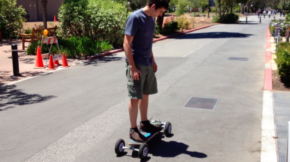 Two students designed a low cost monitoring system for lithium cells and built a lightweight electric skateboard around this system. The team recognized the distinct advantages offered by lithium cells over conventional chemistries and chose to investigate how inexpensively they could construct a compelling lithium based electric skateboard. The result was a skateboard with enough power to propel the rider at up to 20mph and up reasonable inclines but light enough that it could be used as a regular skateboard and without significantly impacting the handling. The team extended the project by designing a PIC based wireless remote throttle.