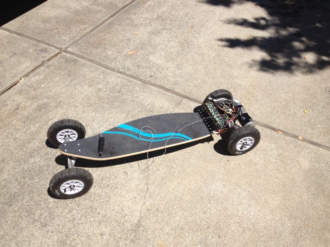 Two students wanted to find out how readily you could electrify a ride on scooter using commercially available components. The students purchased a standard push scooter and modified the platform to accomodate their electric powertrain. Next the students designed a simple speed controller using off-the-shelf parts and integrated the system on the frame.