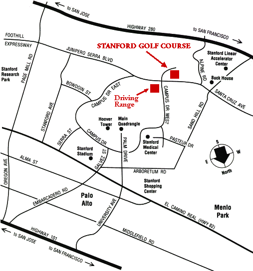 Directions to the Stanford Golf Course: 198 Junipero Serra Boulevard, Stanford, CA 94304