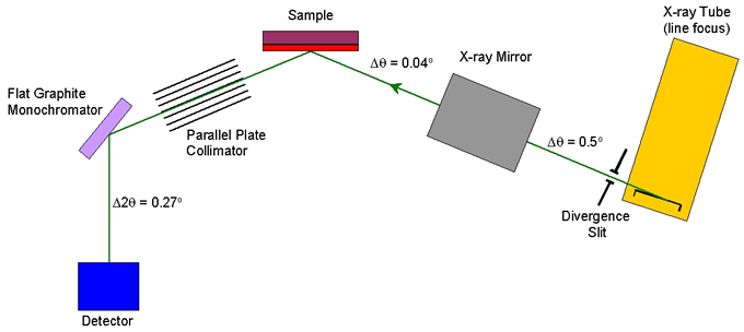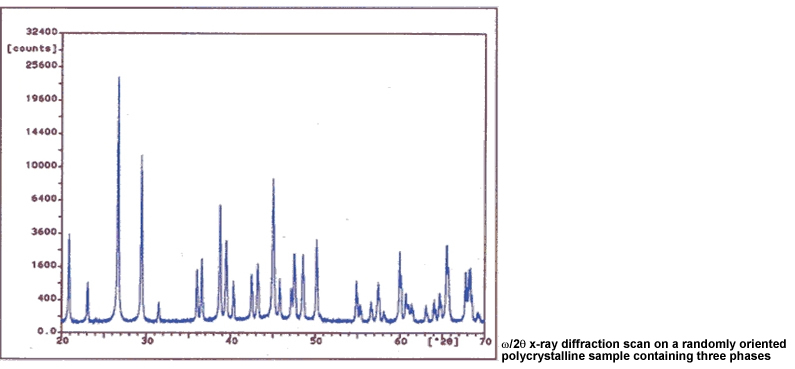 Symmetrical w/2q scan is equivalent to the well known q/2q scan. Well suited for preliminary thin film texture analysis, phase analysis on powder samples.