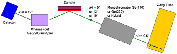 Reciprocal Lattice Point (RLP) shapes depend on sample dimensions and perfection. Interpretation of broadening: Along w/2q direction variation in d-spacing with depth for thick layers peak broadening due to thin layers wavelength broadening of incident beam (not monochromatic) Along w direction mosaic spread or lateral incoherence high uniform dislocation density sample curvature Along 2q direction detector aperture