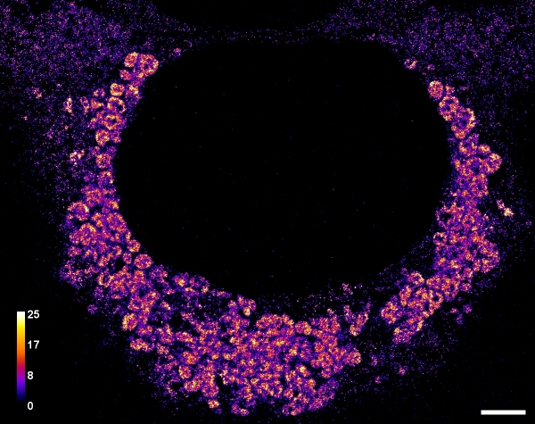 (Superresolution image of vgRNA-filled replication organelles for SARS-CoV-2 in an infected cell (see DOI))
