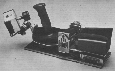 The second concept involves the role of proprioceptive feedback. Best performance results have been obtained for spring-return displacement sticks and isometric joysticks (7). The first category has an advantage in jolting controller environments, such as electric wheelchairs, where the hand's accelerations cause disturbance forces to be imparted to the control stick: the added position cue of displacement minimizes the disturbance effect (1). The second use for proprioceptive feedback is in distinguishing one axis of control from another. A controller with a center detente permits full linear behavior throughout the non-zero control space, while cueing the operator when the zero-position in any direction is attained. For an electric wheelchair, this provision allows for forward motion without controller-induced side-to-sidedrift.