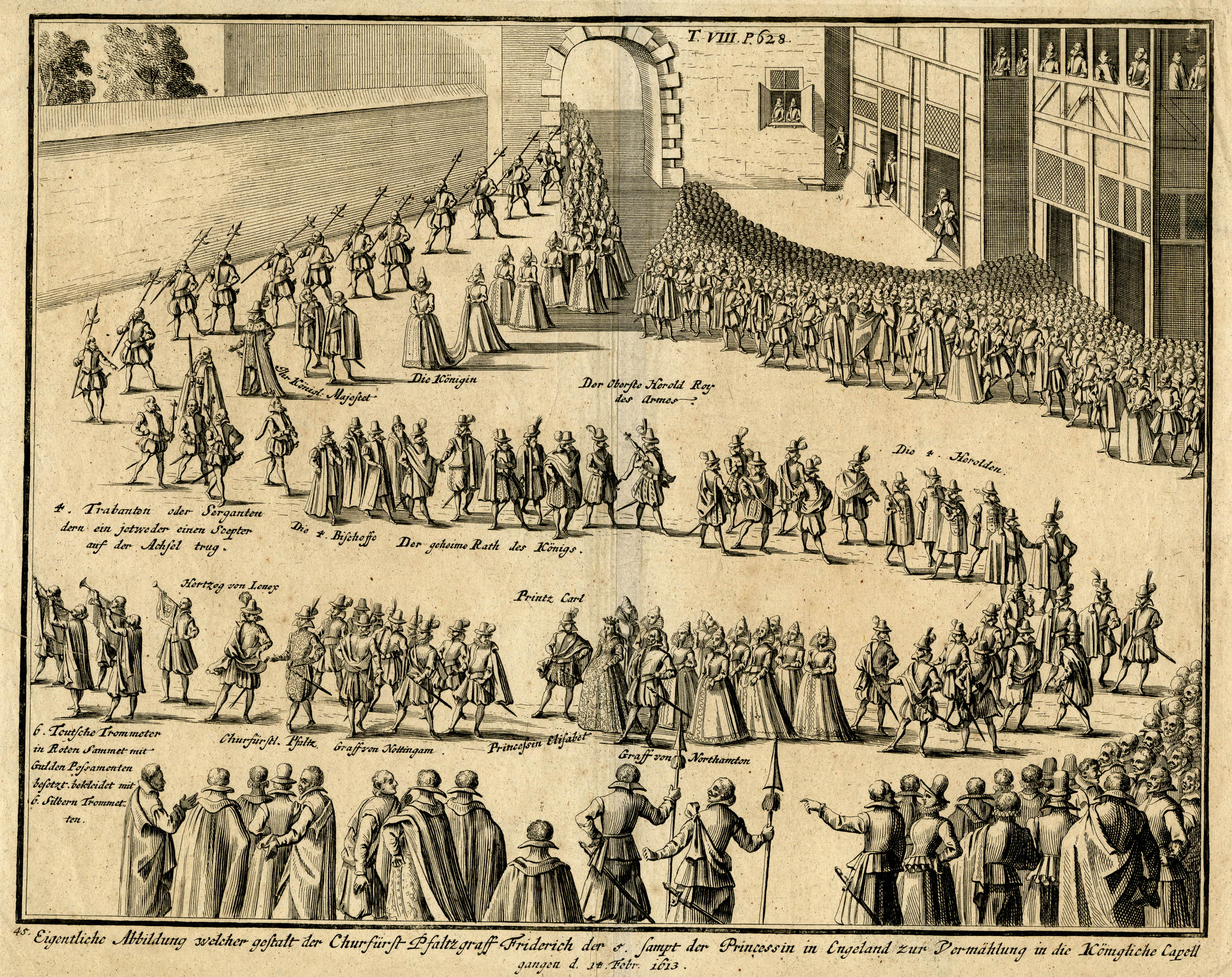1 Beschreibung Der Reiß: Empfahun[n]g deß Ritterlichen Ordens: Vollbringung des Heyraths: vnd glücklicher Heimführung: Wie auch der ansehnlichen Einführung: gehaltener Ritterspiel vnd Frewdenfests: Des ... Herrn Friederichen deß Fünften/ Pfaltzgraven bey Rhein ... Mit der ... Princessin/ Elisabethen[n]/ deß Großmechtigsten Herrn/ Herrn Iacobi deß Ersten Königs in GroßBritannien Einigen Tochter?: Mit schönen Kupfferstücken gezieret, [Electronic ed.] ([Heidelberg]: Vögelin, 1613). Accessed January 12, 2010. http://diglib.hab.de/drucke/197-15-hist/start.htm.