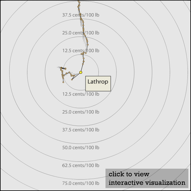 8 The freight table values for various stations were connected to the rail network through the attribute value of the station name in ArcGIS. The rail network with all of the included freight data was then exported into Flash.