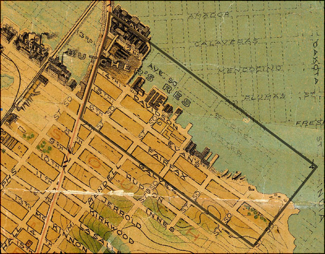 17 Roger Olmsted and Nancy Olmsted, Rincon de las Salinas y Potrero Viejo—the Vanished Corner (San Francisco: San Francisco Clean Water Management Program, 1981) 219; Roger Lotchin, San Francisco, 1846-1856: From Hamlet to City (New York: Oxford, 1974) 169; William Crittenden Sharpsteen, “Vanished Waters of Southeastern San Francisco, ” California Historical Society Quarterly, 21 no.2 (Jun., 1941), online: www.sfmuseum.org/hist5/vanish.html (accessed 12/17/09).