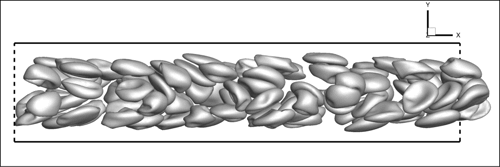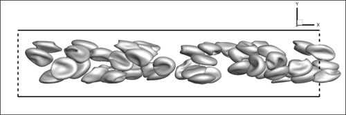 Simulation of RBC suspension at 10-20% hematocrit (volume percent) at physiological viscosity ratio.