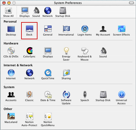 Scroll down to System Preferences. You will then see this screen. Click on Dock.