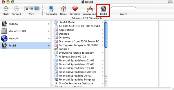Now whenever you log out of your computer and want to launch the ResEd Server quickly, click on Finder, click on the ResEd icon that will stay in your Finder panel and it will launch for you. It will ask for your name and password but some people find this easier than going to finder, clicking on Go....blah blah blah.