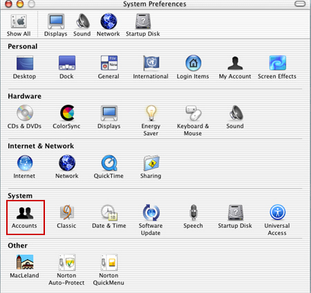 The System Preferences screen will open up. Click on Accounts