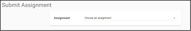 Figure 2: When you select an assignment from the dropdown menu, the page presents you with a file selection area. You can drag your files there or use the "Choose File" button.