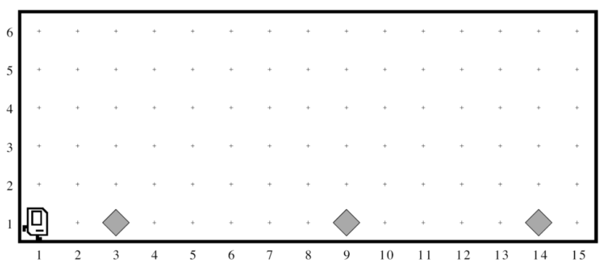 Karel begins at the left end of a row that might look like this: