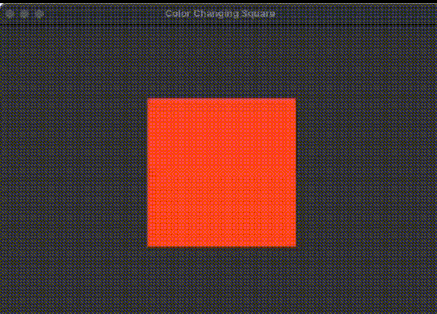 SQUARE_SIZEpixels in width and height in the center of the screen. You can choose any initial color. - Create an animation loop; within a loop, sleep for