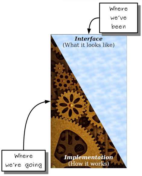 Our foray into classes marks our own paradigm shift in terms of our approach to ADTs in this class. We have so far taken a client-side approach to ADTs, where we have examined only their interfaces and had most of the implementation details for those ADTs abstracted away from us. We'll now start peeling back the curtain and looking a how we can build these data structures ourselves.