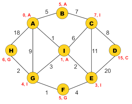 For ease of reference, the solution (using "A" as our source vertex) was as follows: