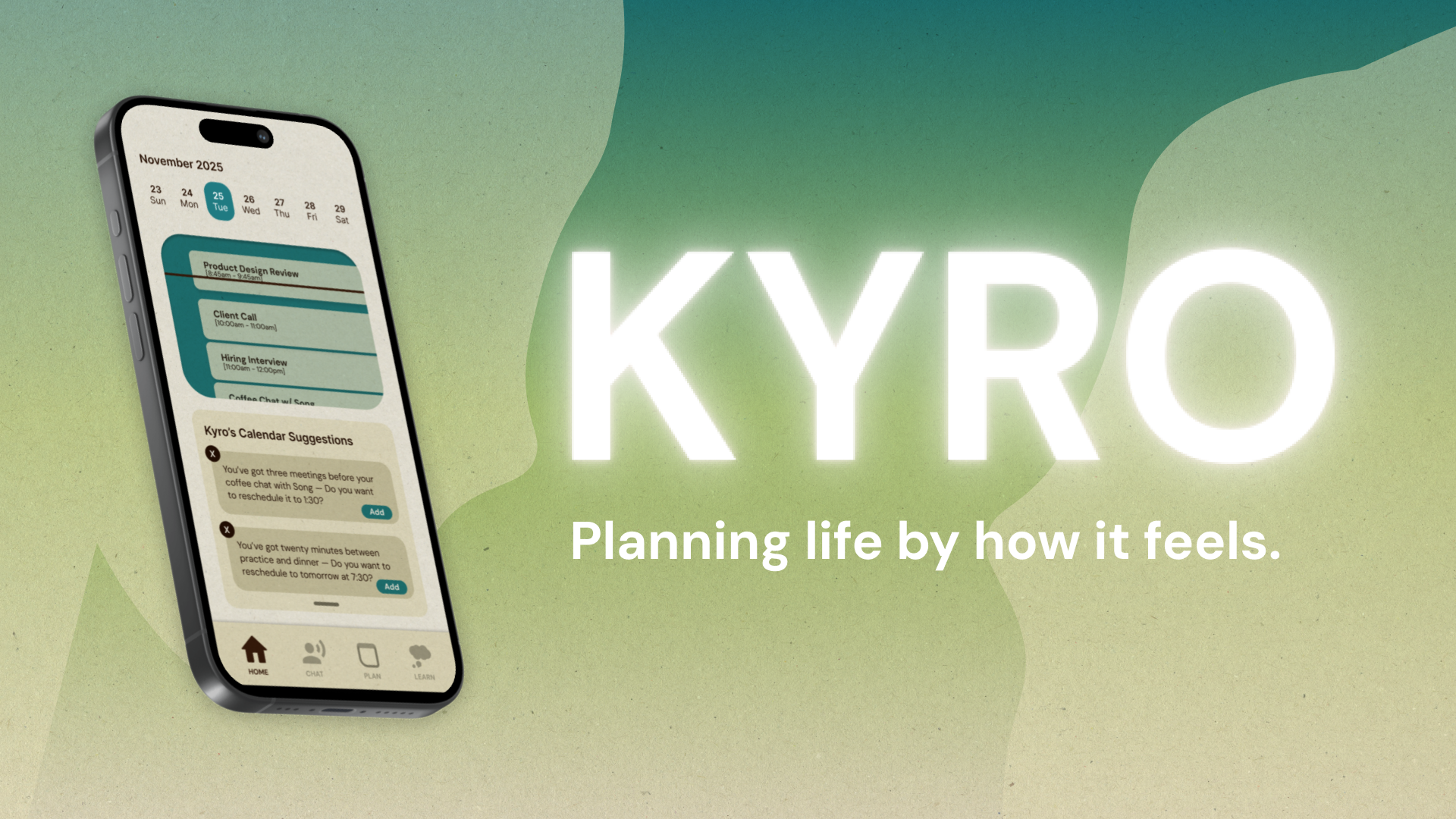 Kyro turns emotional awareness into part of planning. Users log their moods, tag events with energy levels, and receive insights like "time with friends boosts joy" or "late nights increase stress." Over time, Kyro helps users schedule for balance and prevent burnout.