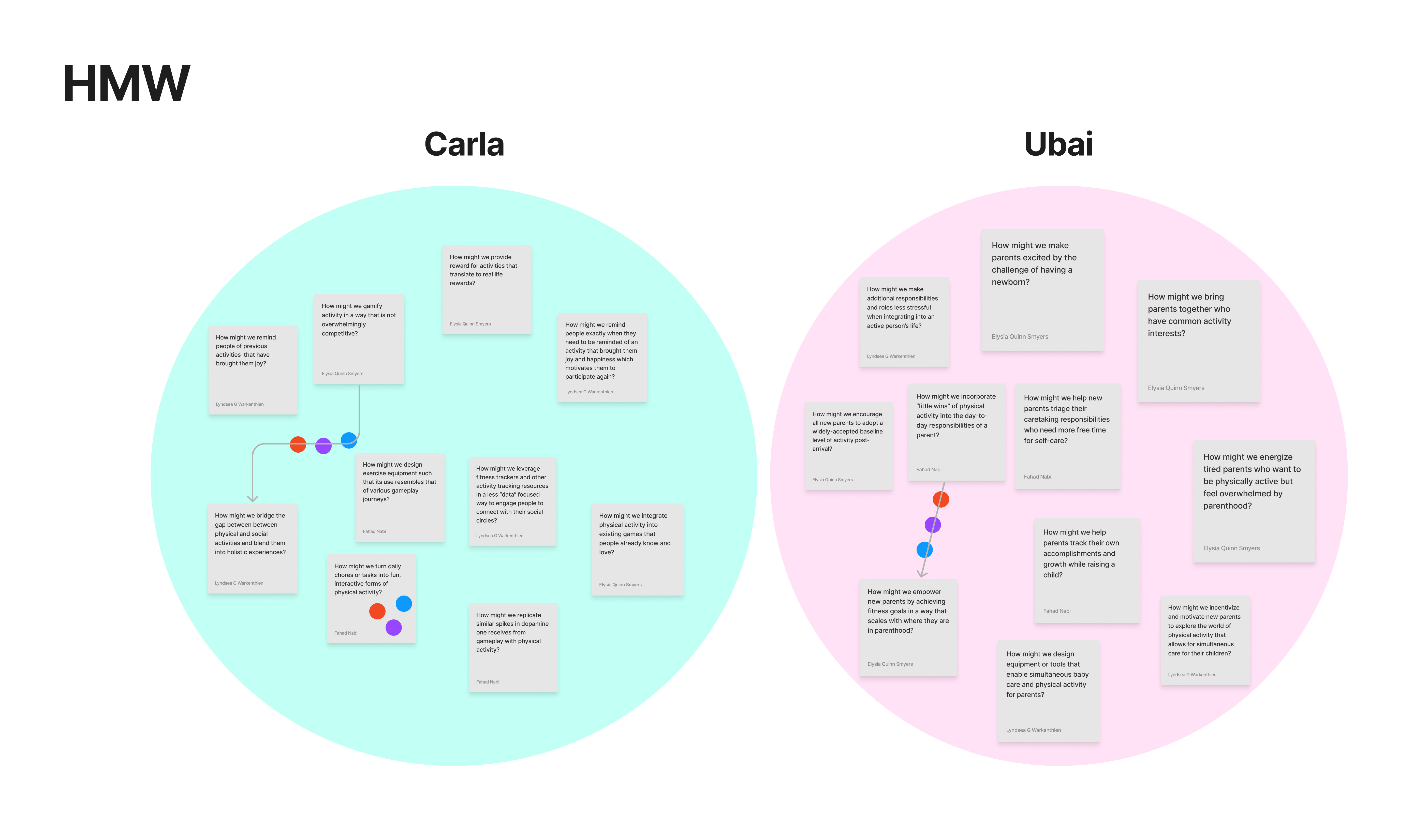 Exploring pain points and needs in our problem domain of staying active when lifestyles change.