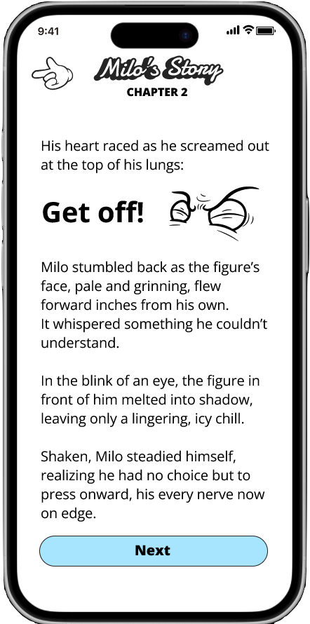 Complete tasks to gain XP, level up, and unlock new chapters. Each chapter unfolds a personalized adventure that brings you closer to your goals.