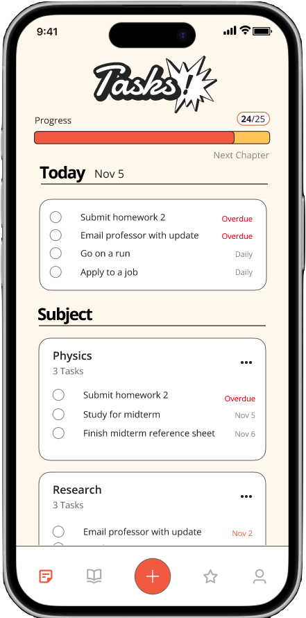 Receive notifications to keep you on track. If tasks are missed, your pet subtly shows it, offering a lighthearted reminder to stay engaged with your story.