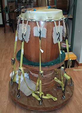 - The drum itself sits on a carpeted disk of plywood. This disk should be at least a couple inches thick. Make sure it is centered on the stack because it is under a lot of pressure.