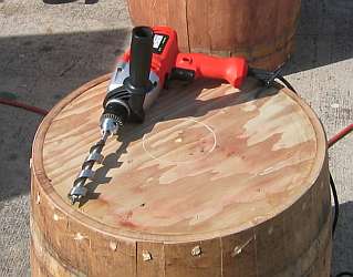 Zenshin Daiko made a sanding jig that significantly reduces the time it takes to get through this stage. However, the jig is difficult to make and to store. All of this stage can be done without the jig: it will just take longer. If you do not have a similar jig, move to the next step (cutting out the center of the plywood inserts) and then sand; this will make the barrel easier to handle.