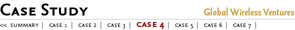 Global Wireless Ventures is a good case study to discuss before delving into Danger Inc., a longer case on the wireless industry that is provided in the appendices. The importance of understanding context and circles of influence should be stressed early on in a course on technology ventures.