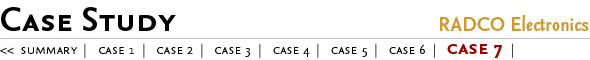 RADCO Electronics is a good case study to jumpstart discussion on organizational dynamics as well as strategy challenges that a startup faces as it grows up. This case will enrich concepts learned in Sections II and III of the text.