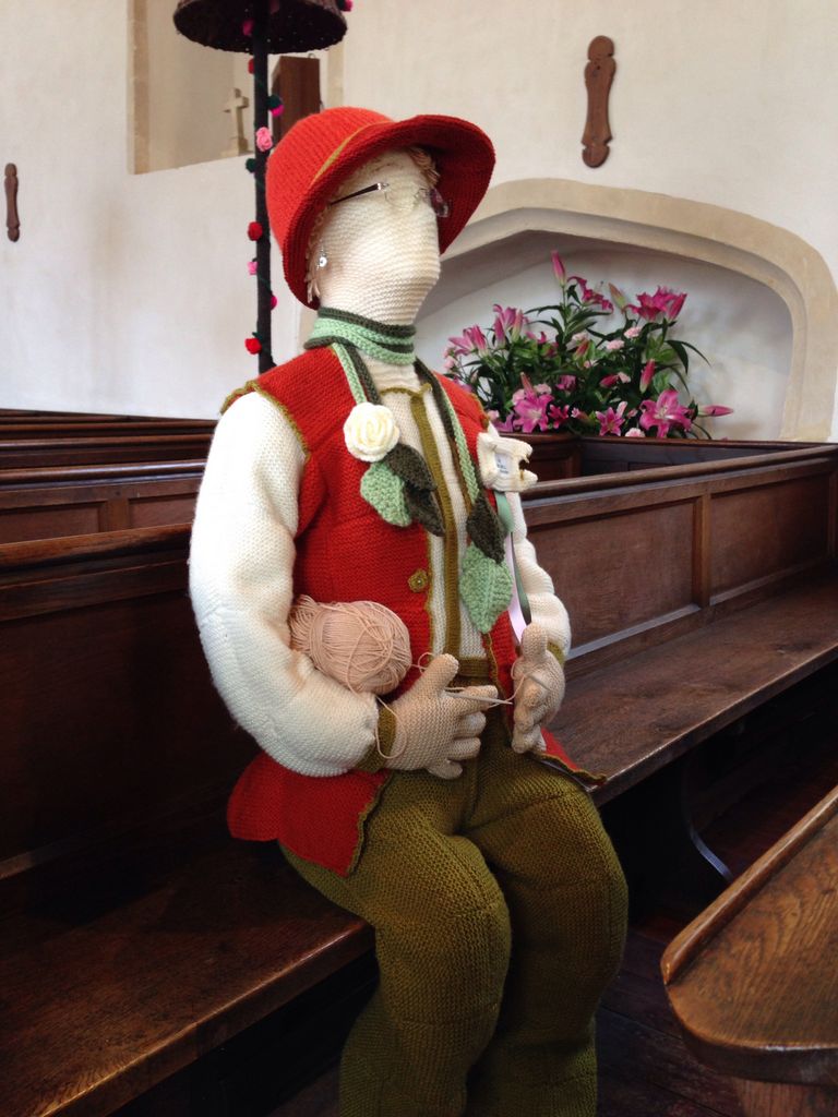 BlossomsYarnNorfolk2015 -- Wedding Guest with her knitting (Lois Gill, Artistic Director, Blossom & Yarn Festival) - Caston