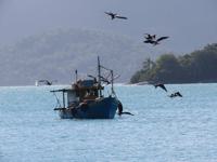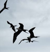 birds to see. The frigate bird feeding frenzy around a fishing