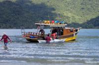 return to Paraty), using the support boat to follow along. Now