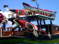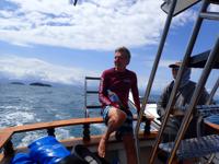 the helm of the support boat, Antonella. Since all our luggage