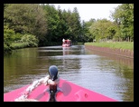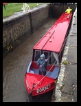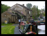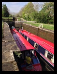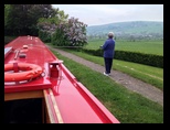 | Canal boating: We rented the 45'x7' Dorset narrow boat from Shire Cruisers, based out of Sowerby Bridge. The original plan was the Worcester, starting at Sowerby Bridge, but there was a lock problem and the Shire folks couldn't get the Worcester back to Sowerby Bridge in time. So they proposed a different boat (the Dorset) and starting point (Barnoldswick). It was an out-and-back trip, so we set off north from Barnoldswick and figured we'd see how far we got by mid-week before deciding when to turn around. These boats are a bit like floating RVs: drive them yourself and stay on them overnight. We had all our breakfasts and about two thirds of our lunches and dinners on board. The Shire folks gave us a quick rundown on the boat, observed us driving it for a bit and then met us at the first locks. We get to operate those ourselves too. We had set off at the same time as another boat (the Gloucester) and tagged along with them to learn. Though we had to figure out later how to handle a lock solo. We had to get the feel of the boat and endure some wind - there is no keel, so control is marginal. Steering by rudder also reduced control, especially when reversing. We almost managed to get the boat turned around by the wind, but just dodged that bullet. Boat speeds are 2-3 mph usually. We stopped once to take a quick look at the small village of East Marton and decided to call it a day, mooring just before the Newton bank of 6 locks leaving them for the next morning. We settled on Don and Norma manning the boat in the locks and Richard and Deb being the 'grinders', operating the lock sluices and gates. The basic idea of the locks is to get the chamber you're entering to the same water level as the next one either by filling or draining it, then open the gate to the next chamber (now at same level) and exit the lock. This is done with hand cranked sluices and gates that are held closed by water pressure. Once the levels have equilibrated, the gates are easy to open or close. A routine day involved around 9 locks; about half the days had locks to pass through. We were surprised to have excellent weather. This was England, after all. We were in no hurry. The scenery was idyllic, and we could moor up in villages to check them out or find food. We went to the White Swan in Gargrave for a pub lunch, then set off through its three locks, still traveling with another boat, now the Artion. We'd decided putting in stakes around 5:30 each day was the way to go. We had a great sunset at our stop before Skipton, then decided to spend a full day there to investigate the town: local museum, castle, churches and steam train to the village of Bolton and its ruined abbey (we saw several ruined abbeys on the trip, courtesy of Henry VIII). The town used the canal as a thoroughfare and was the only one on the trip for which the canal was a part of the town. More... You can find a handful of short videos showing a bit of what the boating was like. |