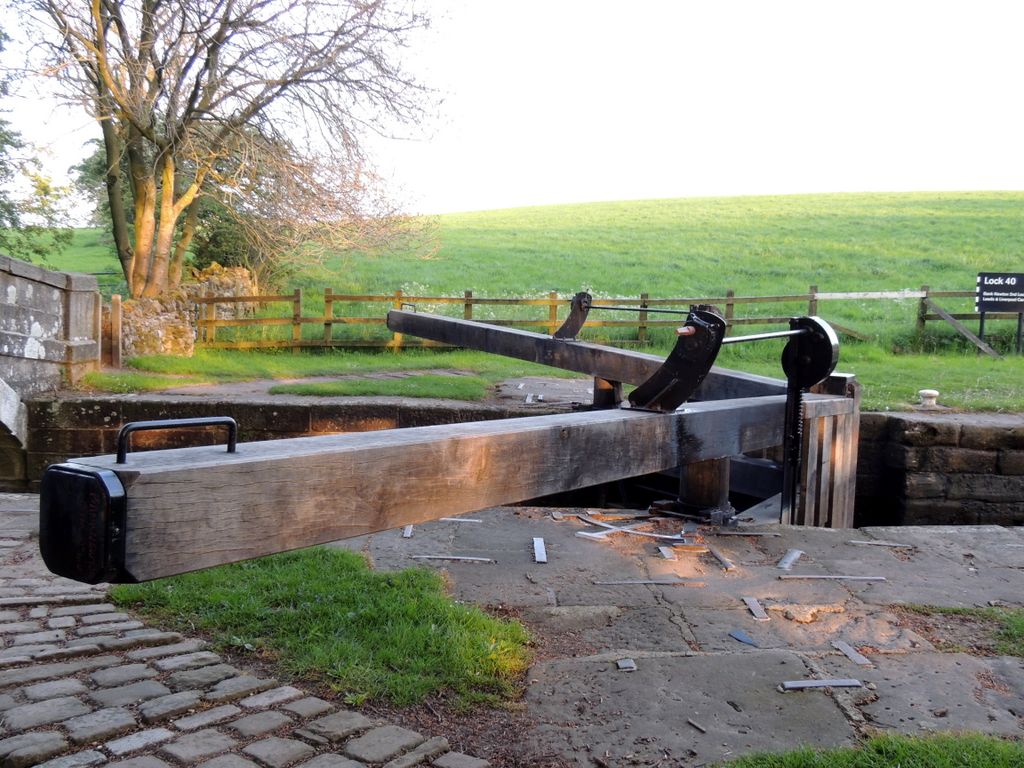 CanalBoatYorkshire2014 -- lock gates. Kept closed by water pressure.