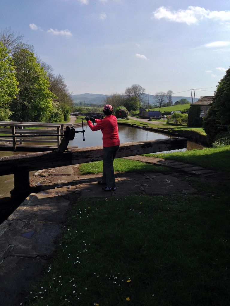 CanalBoatYorkshire2014 -- winding the crank on the gate paddle