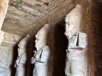 And then there is Abu Simbel itself. Ramses II was fond of building monuments (see Luxor, Memphis) and populating them with statues of himself. Abu Simbel featured 4 massive statues of Ramses, plus a temple dedicated to Nefertari. the interior is elaborately decorated with statuary and wall art (extolling Ramses' exploits, of course). Part of the idea was to demonstrate dominance over Nubia. It was also oriented so that twice per year sunlight would make it to the Holy of Holies sanctuary inside and illuminate the statues of the gods and pharaoh. Evidently we missed that by about a month.