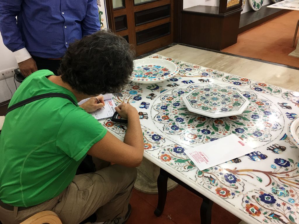 India2016 -- Signing for our marble inlay table, Agra