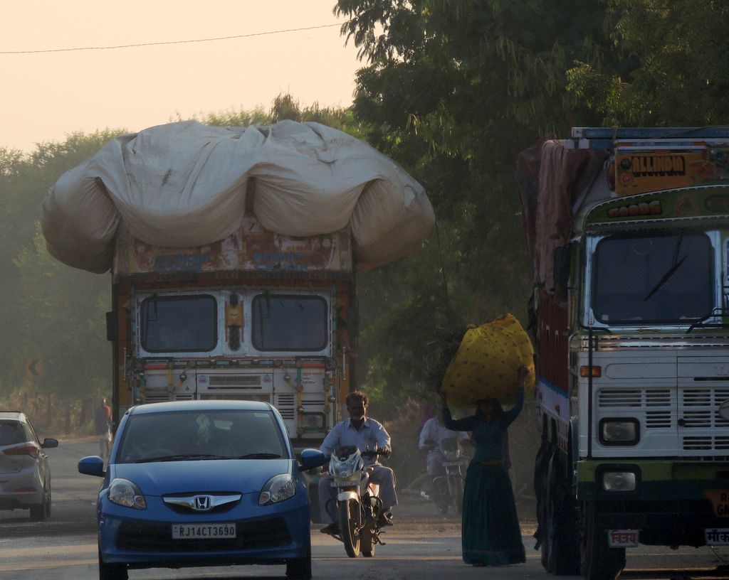 India2016 -- Making use of vertical space, both truck and pedestrian