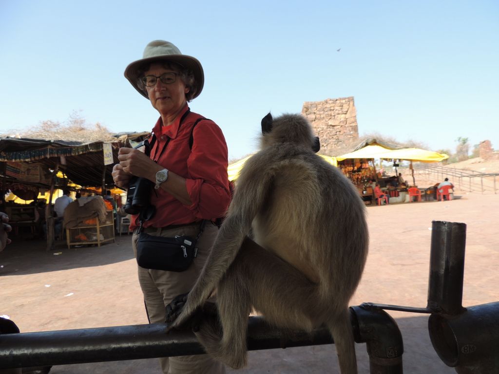India2016 -- Deb and Langur monkey, Fort Ranthambhore