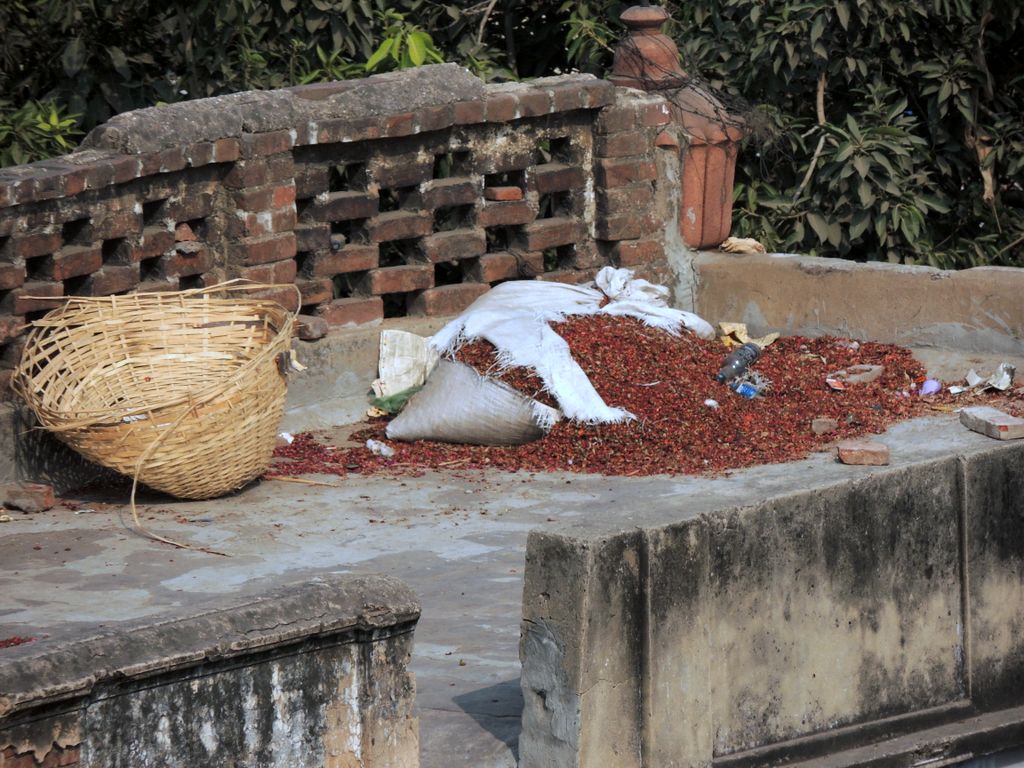India2016 -- Spices (chiles) drying near Fahtepuri Masjid mosque, Old Delhi