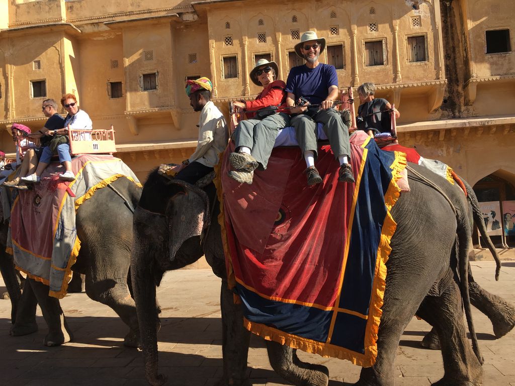 India2016 -- Balancing on the howdah - Amber Fort, Jaipur