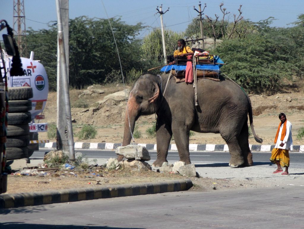 India2016 -- Elephant at the rest stop - on the way from Jaipur to Khejarla
