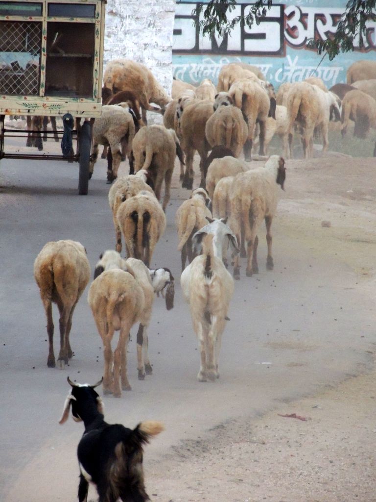 India2016 -- Goats on the road, Khejarla