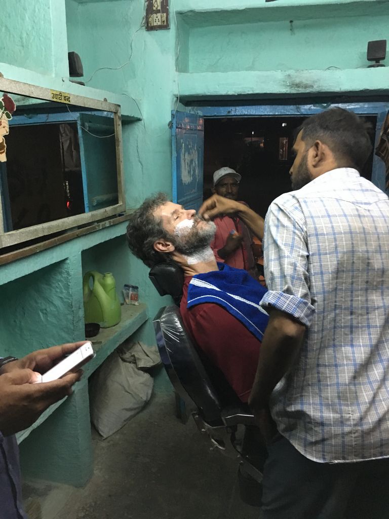 India2016 -- First ever straight razor shave - Khejarla - a hit with the locals