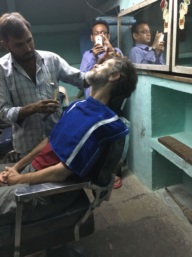 India2016 -- First ever straight razor shave - Khejarla - Lalit reporting back to management