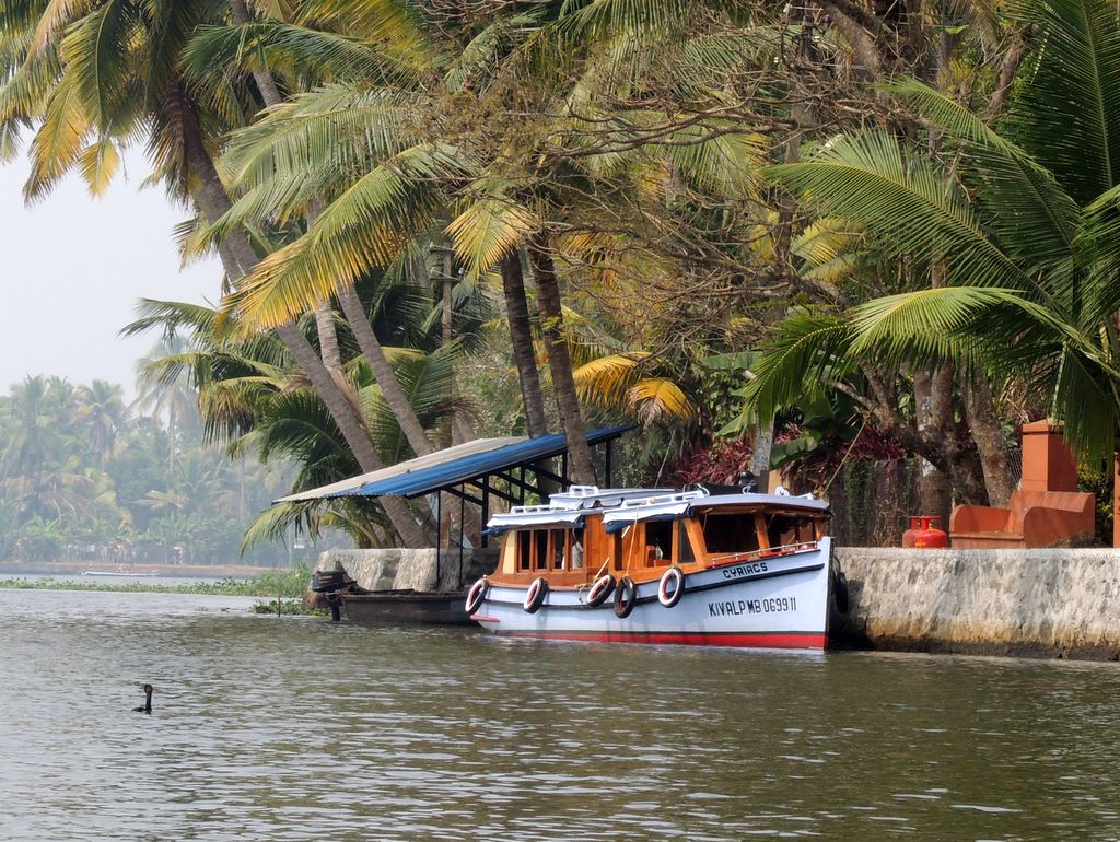 India2016 -- Our backup boat docked at Emerald Isles homestay - Alappuzha