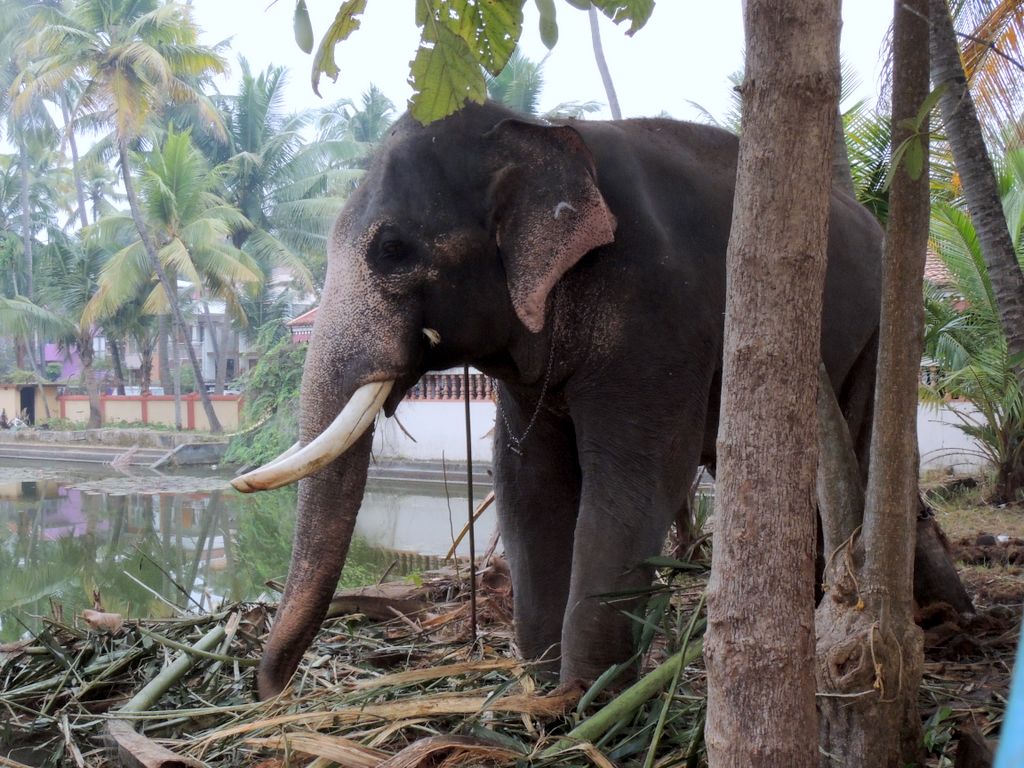 India2016 -- Feeding time for elephant at the temple, Kochin City