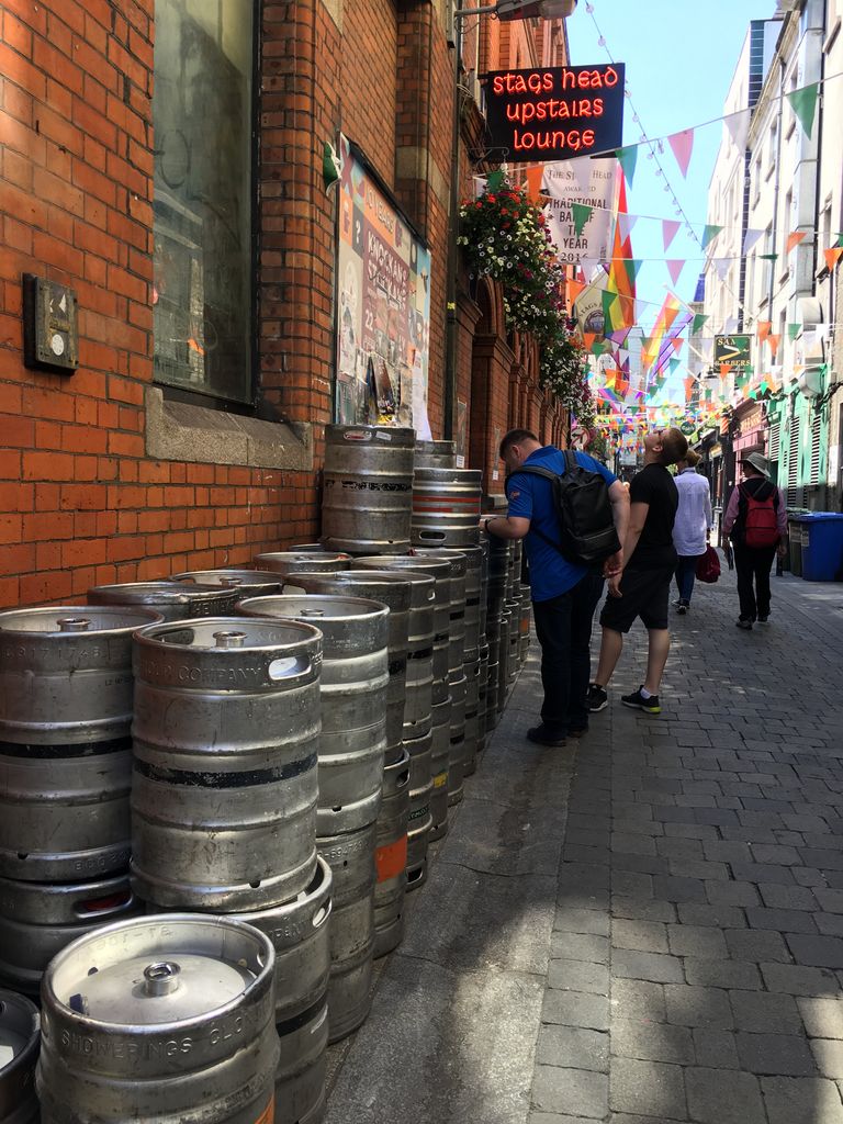 Ireland-2017 -- Lotso kegs at the Stags Head back door